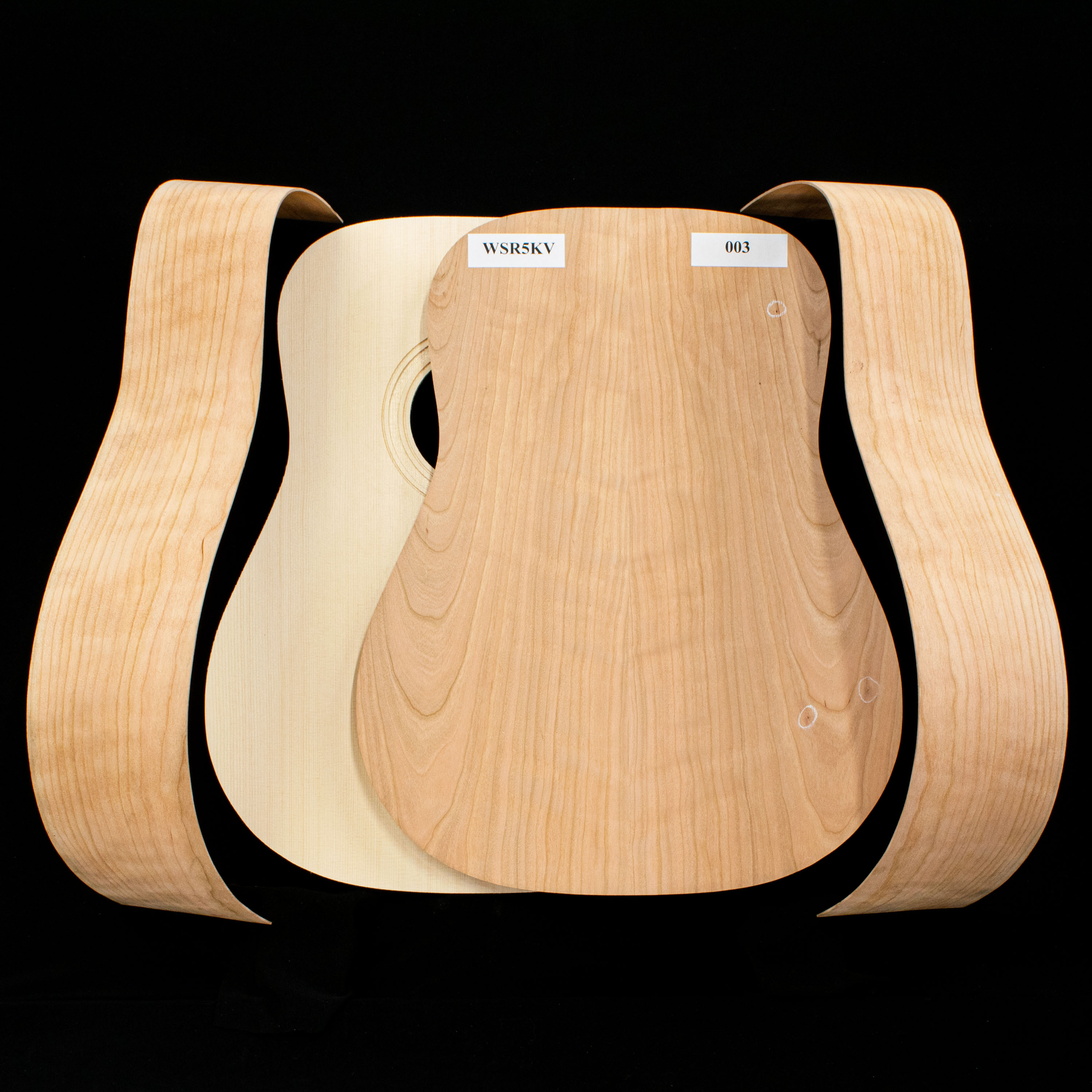 Drawing inspiration from modern boutique builders, we combined a small stash of stunningly beautiful highly-figured Flamed Cherry with Lutz Spruce to make this incredibly striking and brilliant sounding acoustic guitar kit.