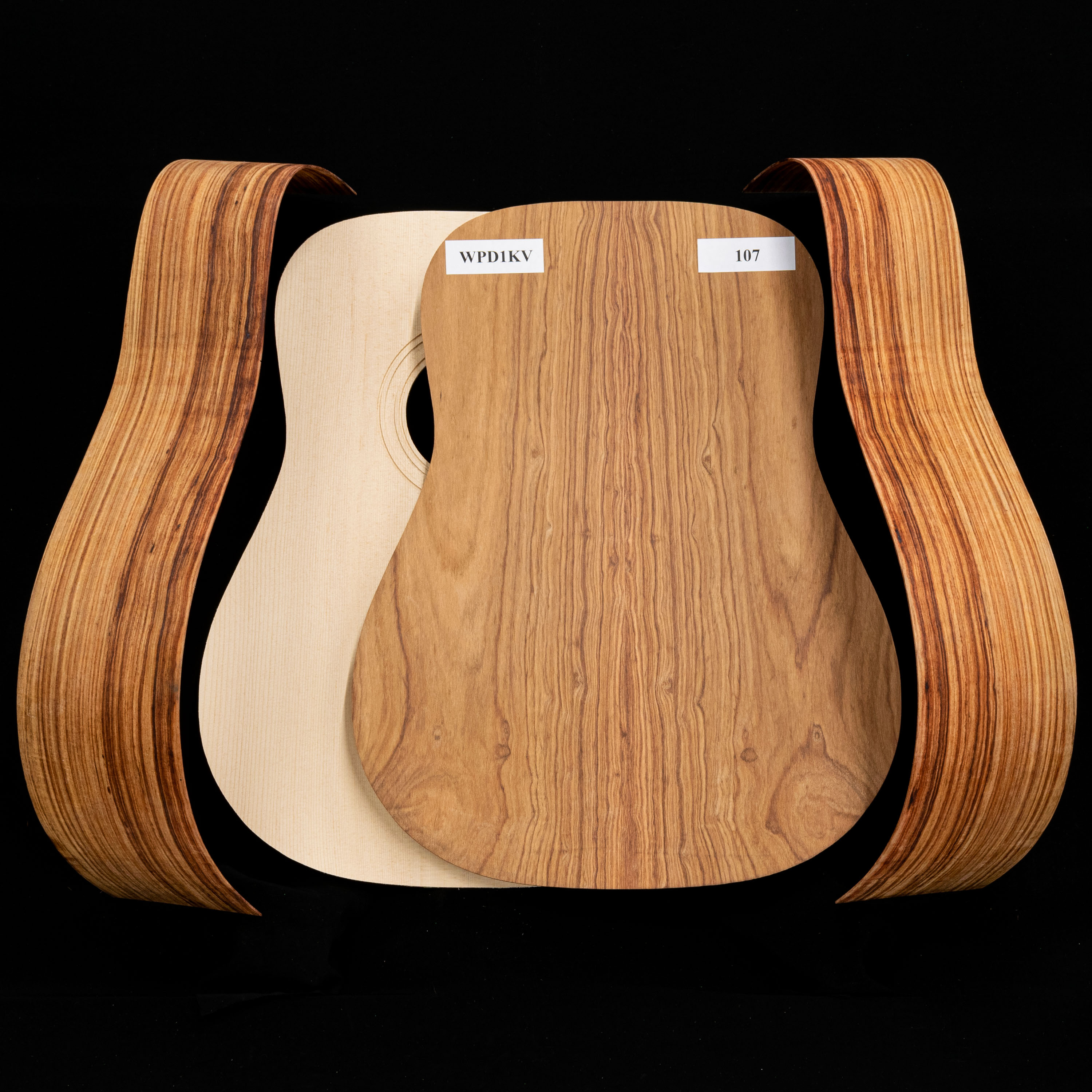 We've photographed each set individually—what you see pictured in the first image is the actual wood you'll receive. Zoom in and check out each set's unique figure, grain, and every detail of your kit's back, sides, and top and get ready to build your dream guitar.