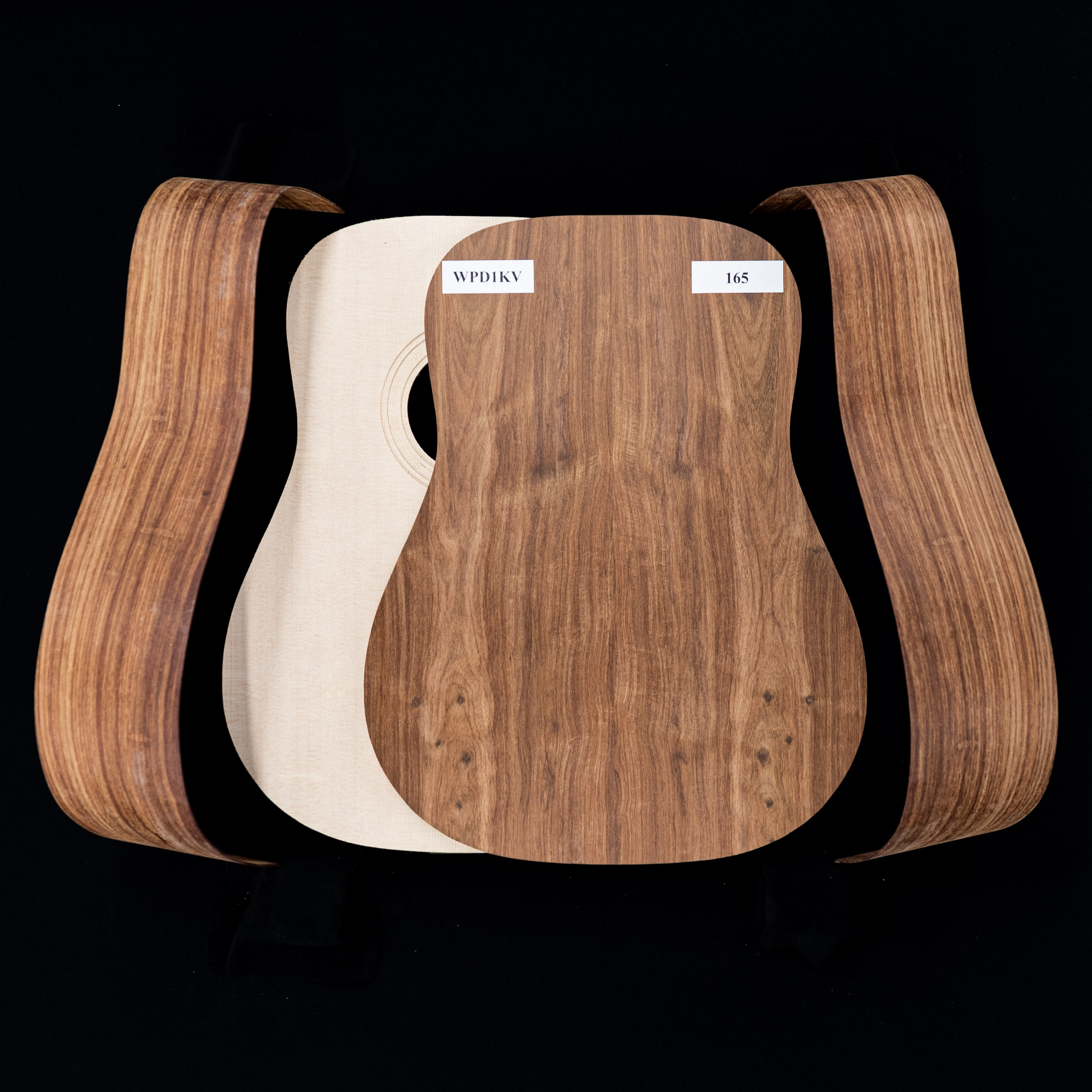 We've photographed each set individually—what you see pictured in the first image is the actual wood you'll receive. Zoom in and check out each set's unique figure, grain, and every detail of your kit's back, sides, and top and get ready to build your dream guitar.
