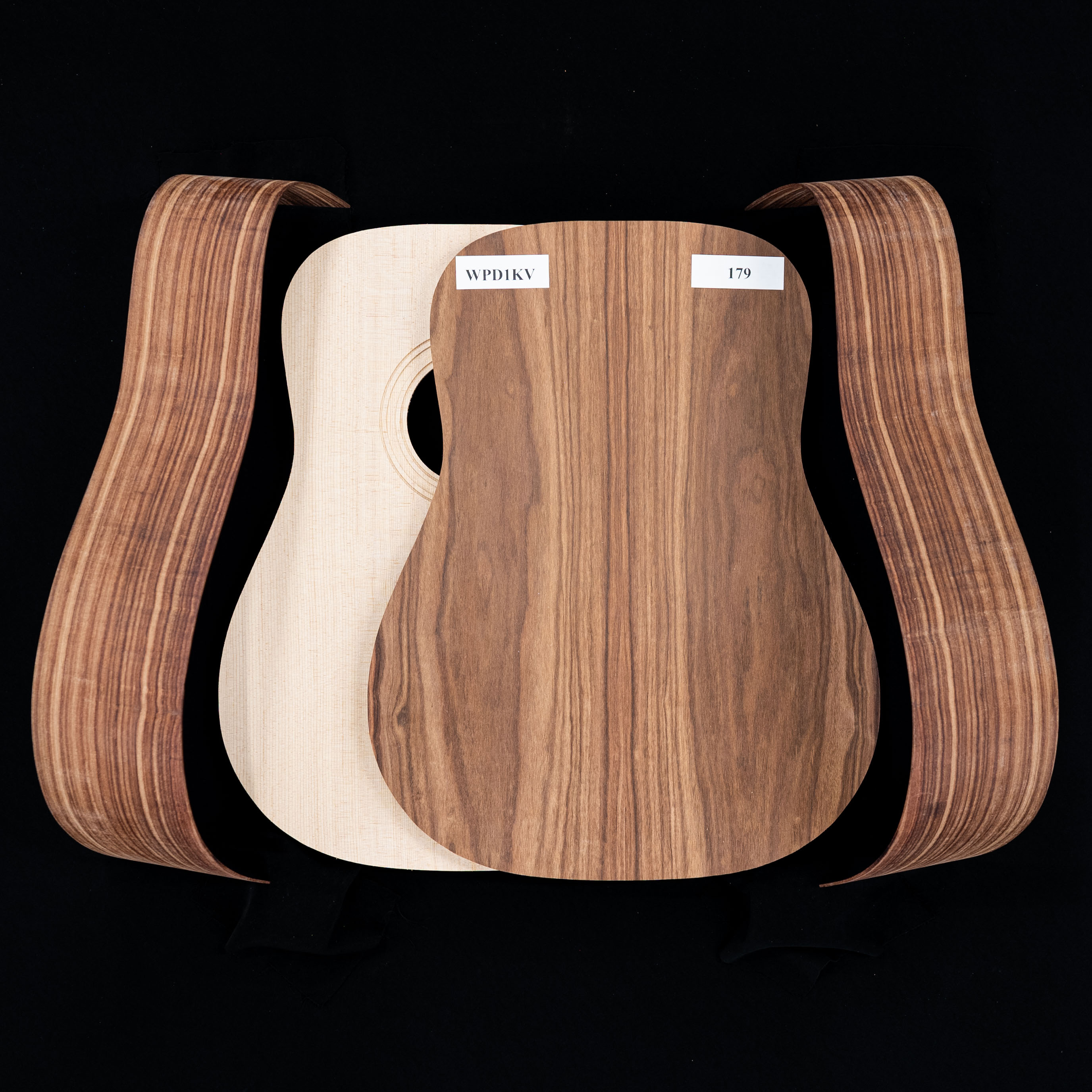 We've photographed each set individually—what you see pictured in the first image is the actual wood you'll receive. Zoom in and check out each set's unique figure, grain, and every detail of your kit's back, sides, and top and get ready to build your dream guitar.