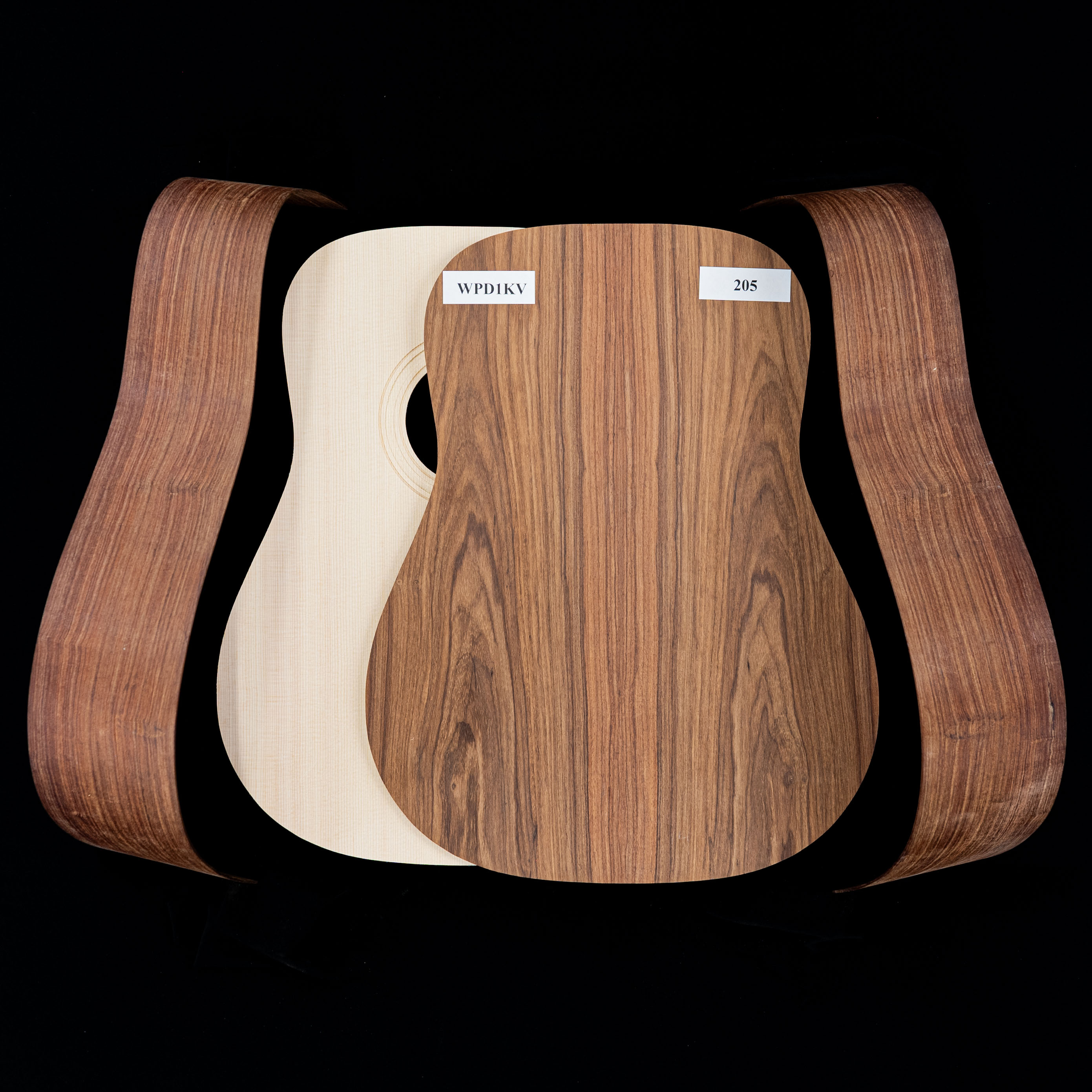 We've photographed each set individually—what you see pictured in the first image is the actual wood you'll receive. Zoom in and check out each set's unique figure, grain, and every detail of your kit's back, sides, and top and get ready to build your dream guitar.