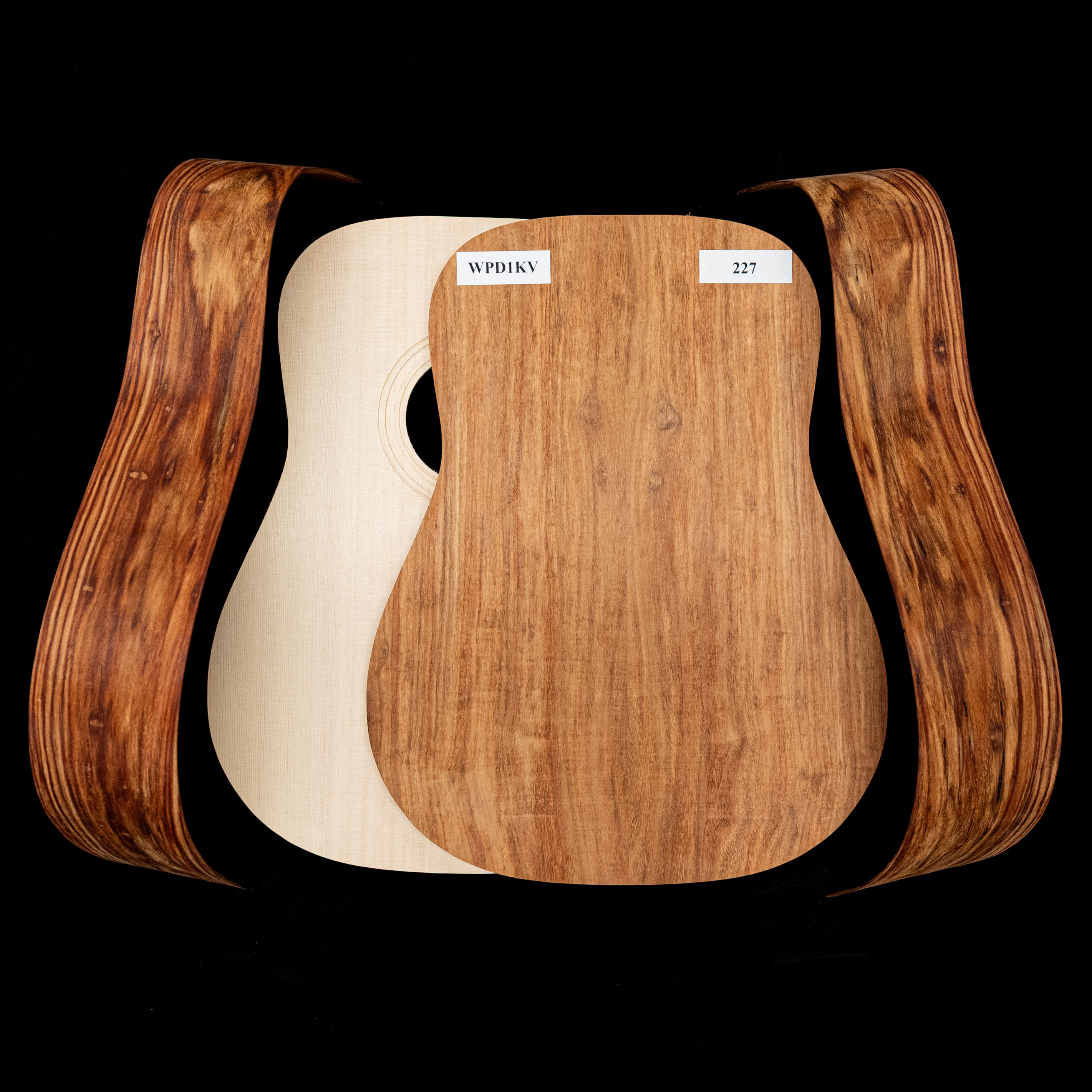 We've photographed each set individually—what you see pictured in the first image is the actual wood you'll receive. Zoom in and check out each set's unique figure, grain, and every detail of your kit's back, sides, and top and get ready to build your dream guitar.