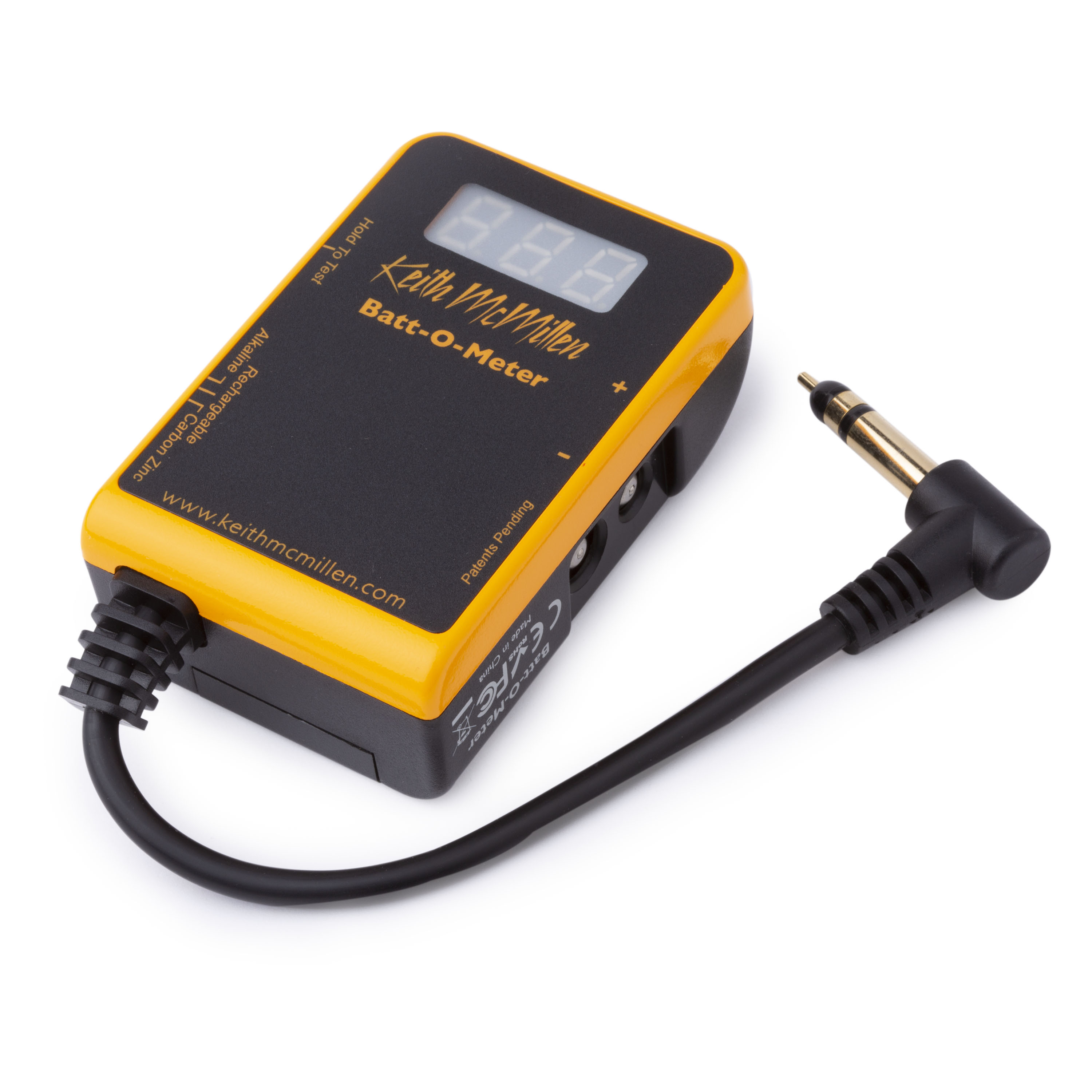 The Batt-O-Meter not only indicates the percentage of life left in an uninstalled 9-volt, AA or AAA battery, but better yet, its smart circuitry works for installed batteries, too! Plug it into a pedal, effects box or active guitar: it measures the power being pulled from the battery, compares that load to the battery's remaining energy, and calculates the remaining hours of battery life.