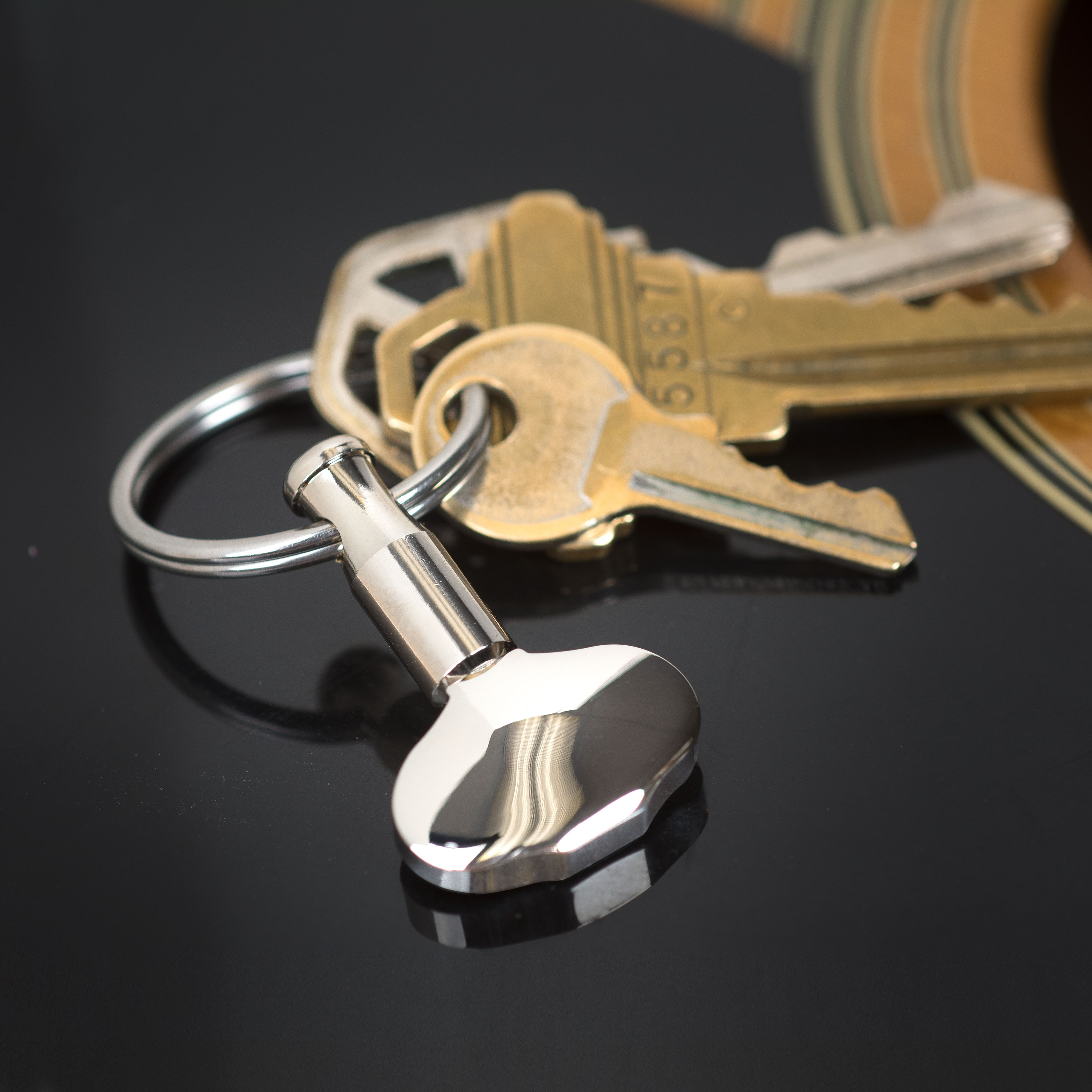 We craft these keychains in our Waverly shop in Athens, Ohio, with the same nickel Butterbean knobs used on our finest tuning machines.