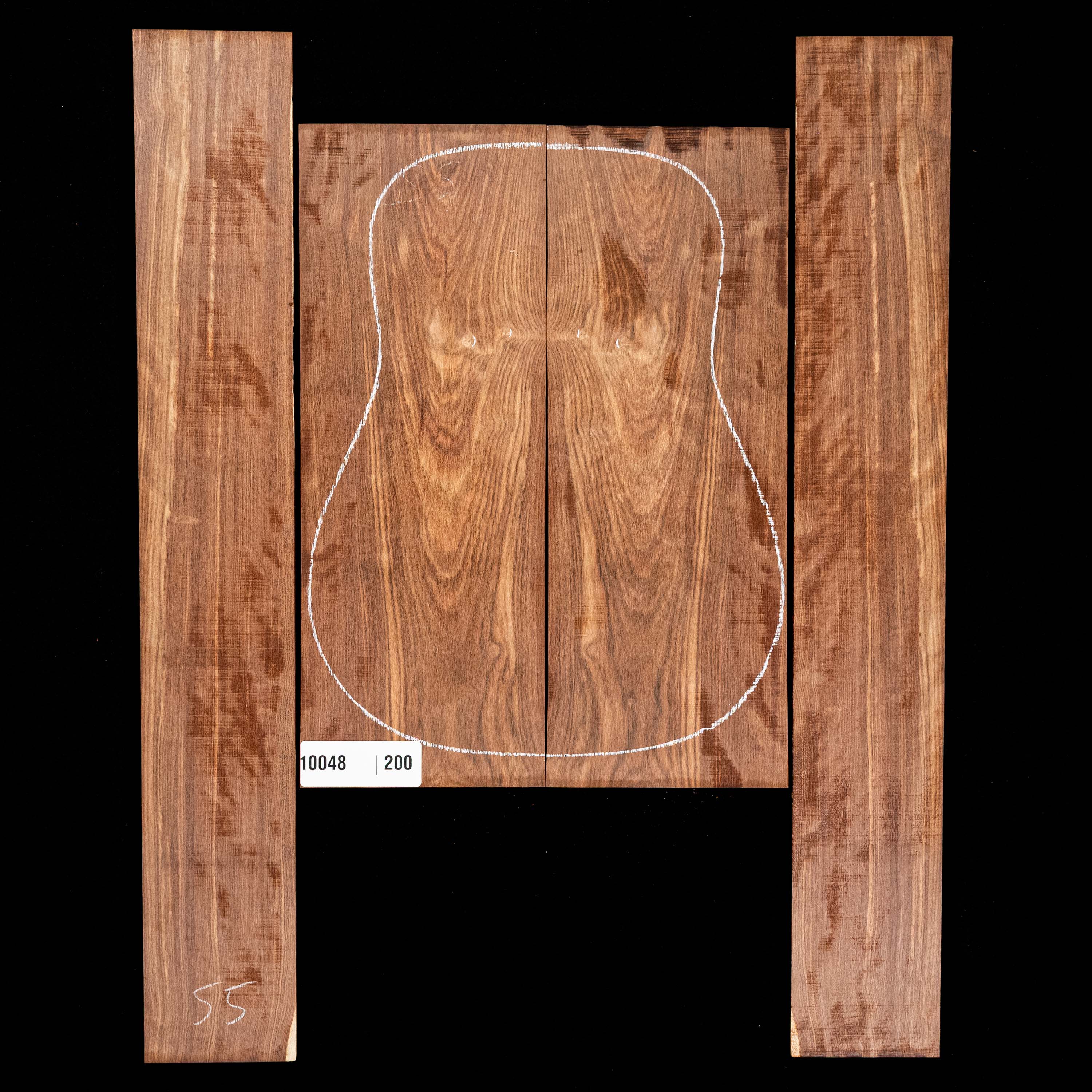 Each bookmatched back and side sets are ready for you to start your build. When joined, they are large enough for a dreadnought. Sides are unprofiled (rectangular) and unbent. Kiln-dried.