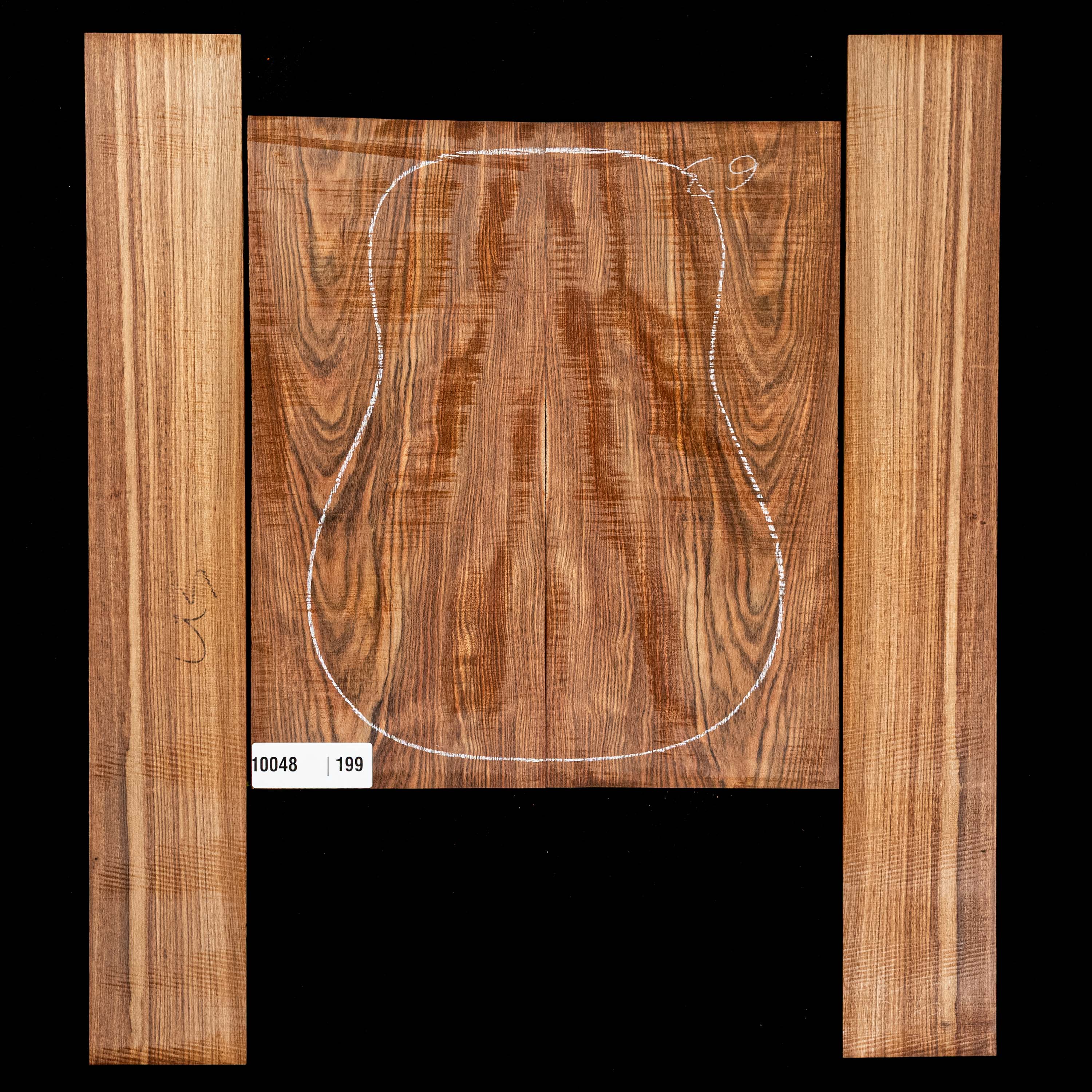 Each bookmatched back and side sets are ready for you to start your build. When joined, they are large enough for a dreadnought. Sides are unprofiled (rectangular) and unbent. Kiln-dried.