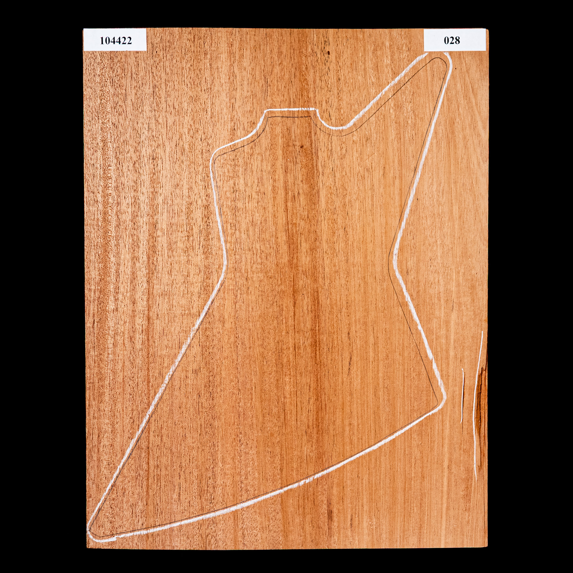 While it's denser and more fibrous than Honduran Mahogany, African Mahogany works and cuts well with both hand and power tools. The reddish-brown coloring will make a beautiful guitar with either a solid or translucent finish. It's an open pore wood, and requires filler to level the grain.