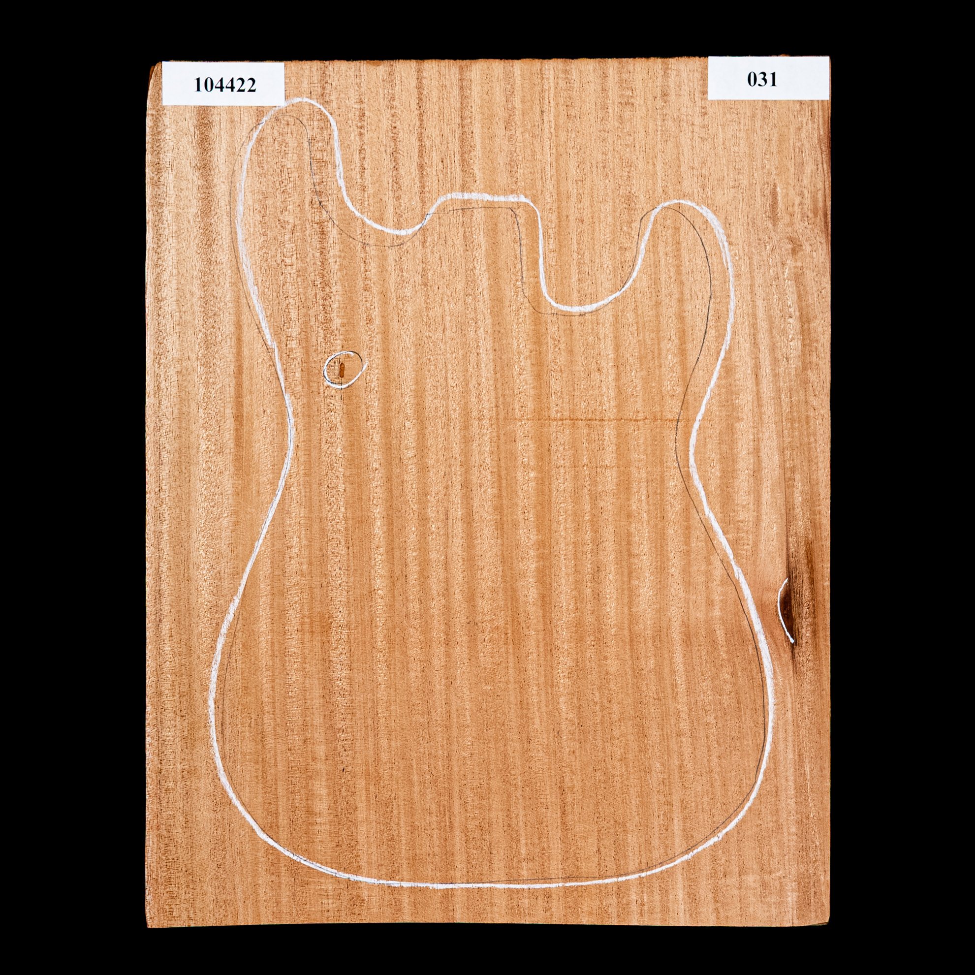While it's denser and more fibrous than Honduran Mahogany, African Mahogany works and cuts well with both hand and power tools. The reddish-brown coloring will make a beautiful guitar with either a solid or translucent finish. It's an open pore wood, and requires filler to level the grain.