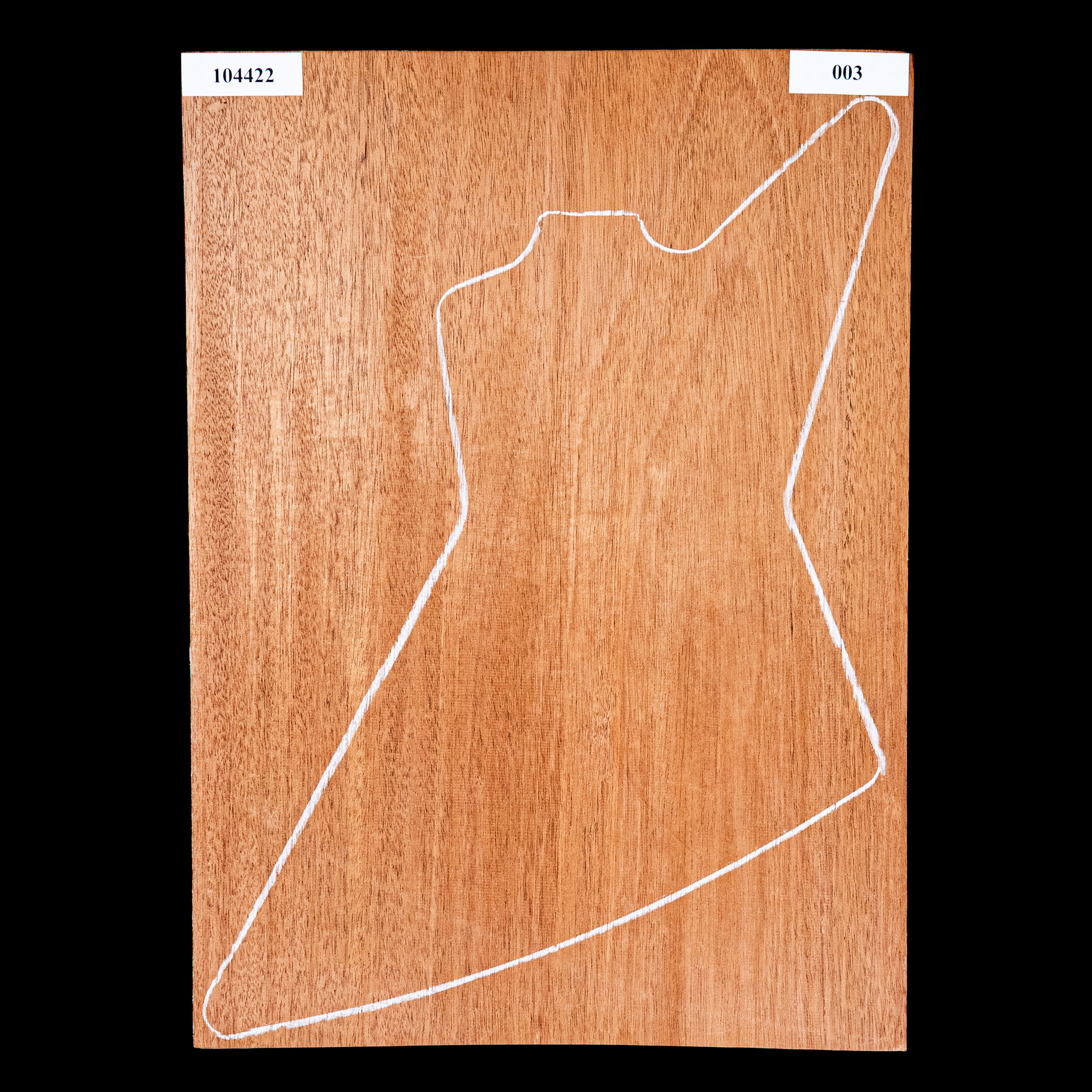 While it's denser and more fibrous than Honduran Mahogany, African Mahogany works and cuts well with both hand and power tools. The reddish-brown coloring will make a beautiful guitar with either a solid or translucent finish. It's an open pore wood, and requires filler to level the grain.