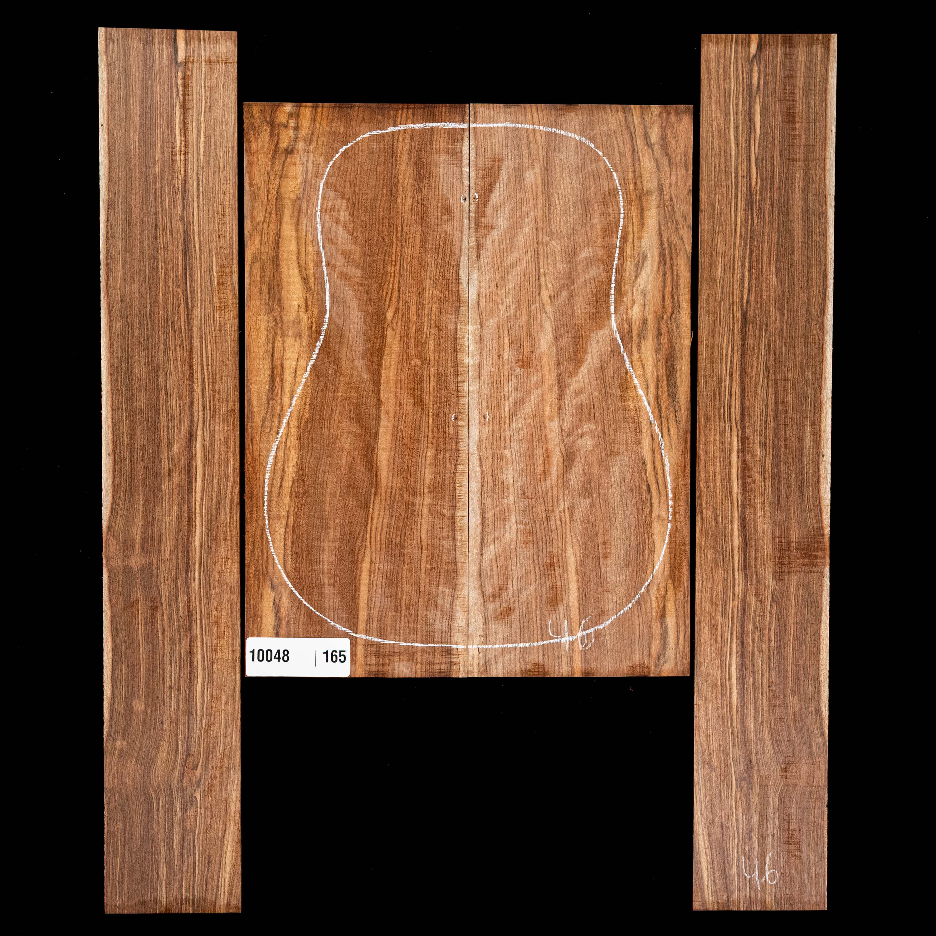 Each bookmatched back and side sets are ready for you to start your build. When joined, they are large enough for a dreadnought. Sides are unprofiled (rectangular) and unbent. Kiln-dried.