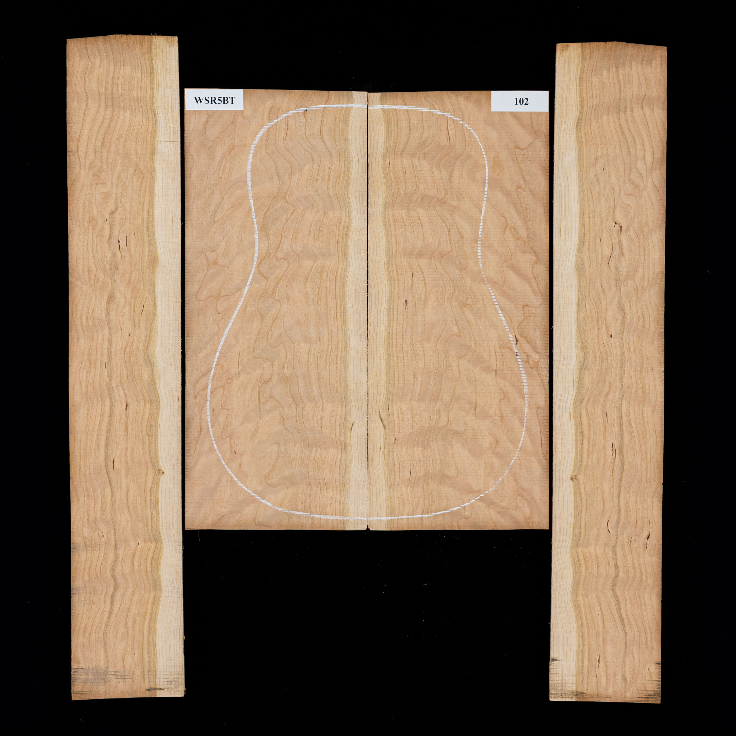 American cherry is an extremely stable, articulate tonewood the falls comfortably between Maple and Mahogany. Its natural light tan / reddish brown color beautifully darkens with age, and its sapwood is more pale with a light pink tone.