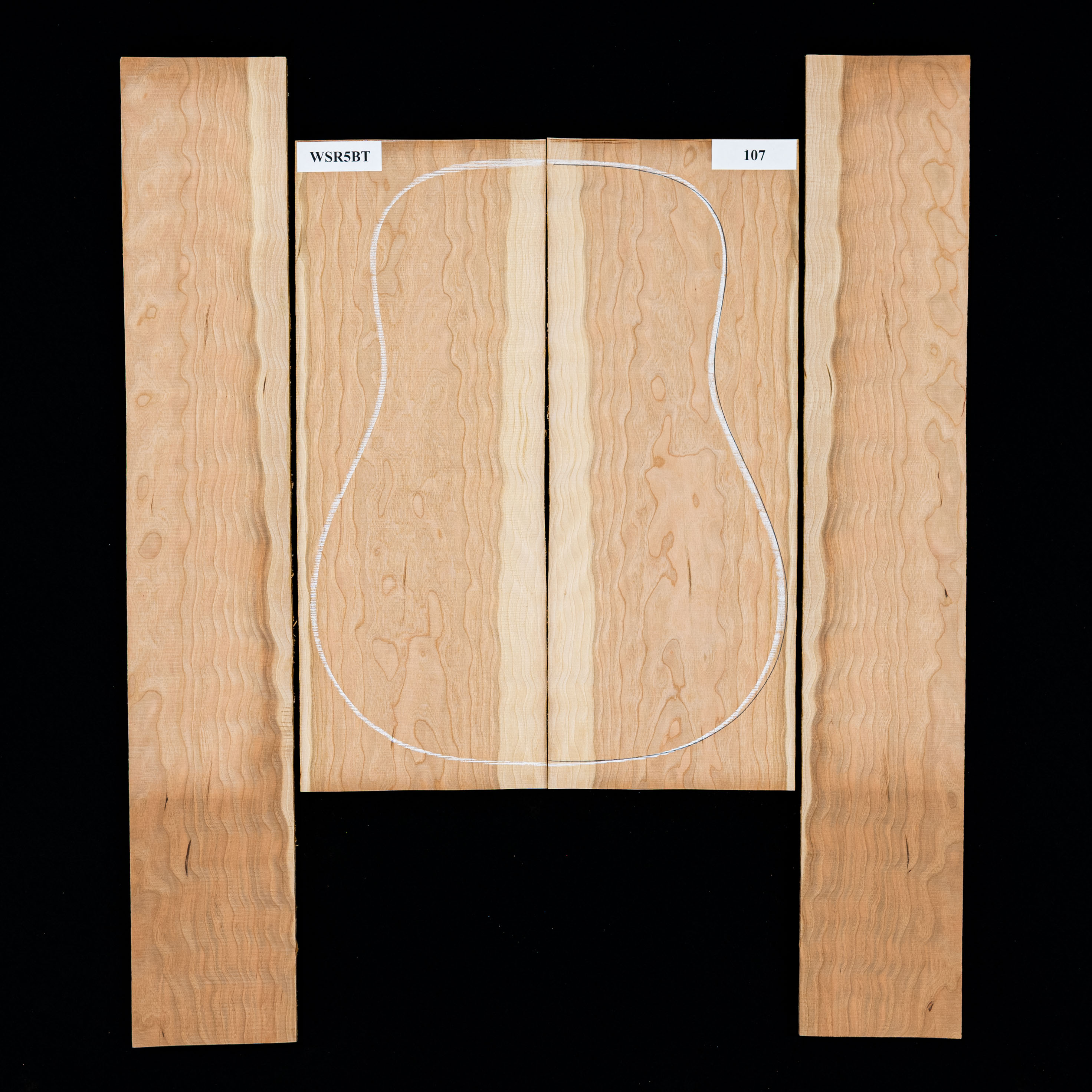 American cherry is an extremely stable, articulate tonewood the falls comfortably between Maple and Mahogany. Its natural light tan / reddish brown color beautifully darkens with age, and its sapwood is more pale with a light pink tone.