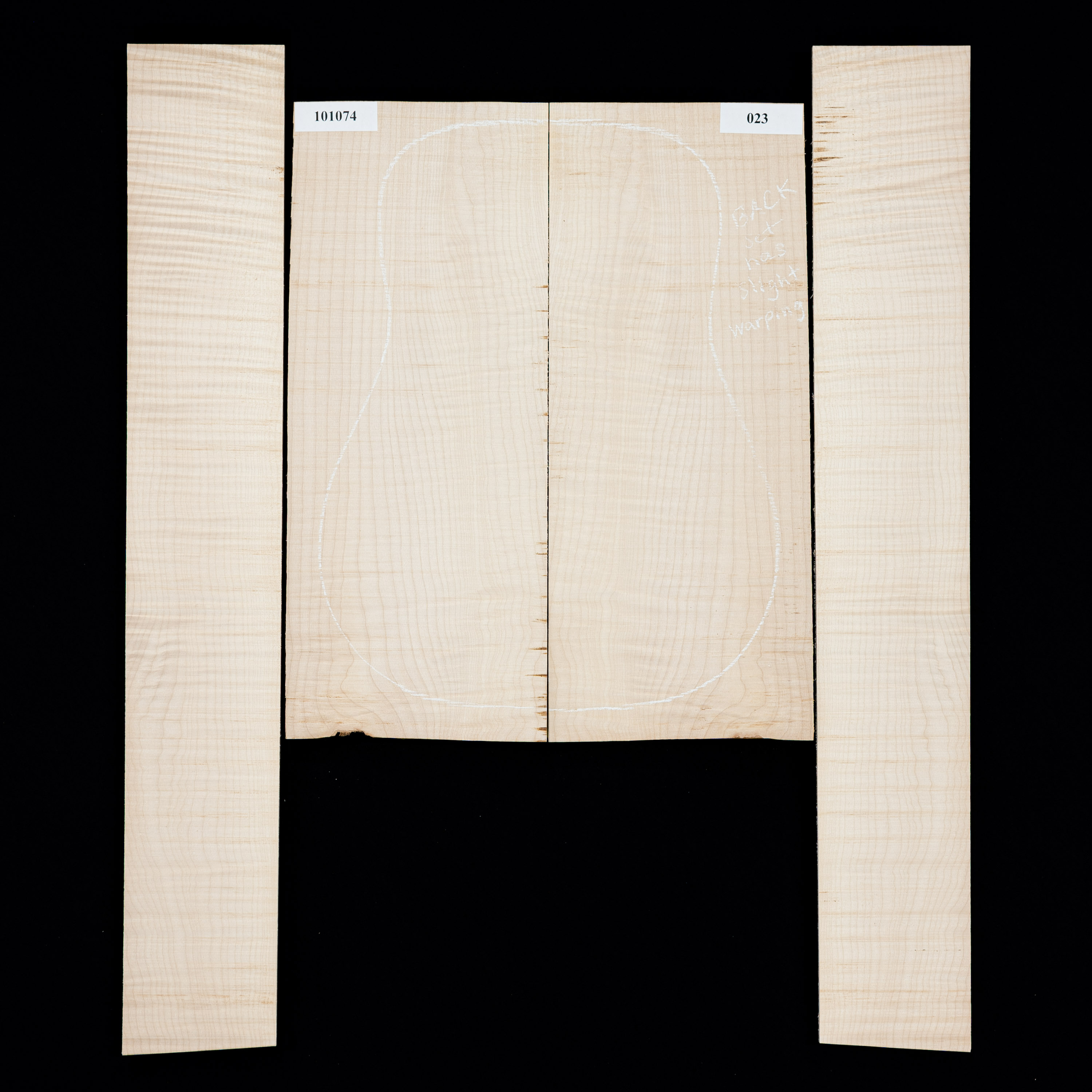 Each bookmatched back and side sets are ready for you to start your build. When joined, they are large enough for a dreadnought. Sides are unprofiled (rectangular) and unbent. Kiln-dried.