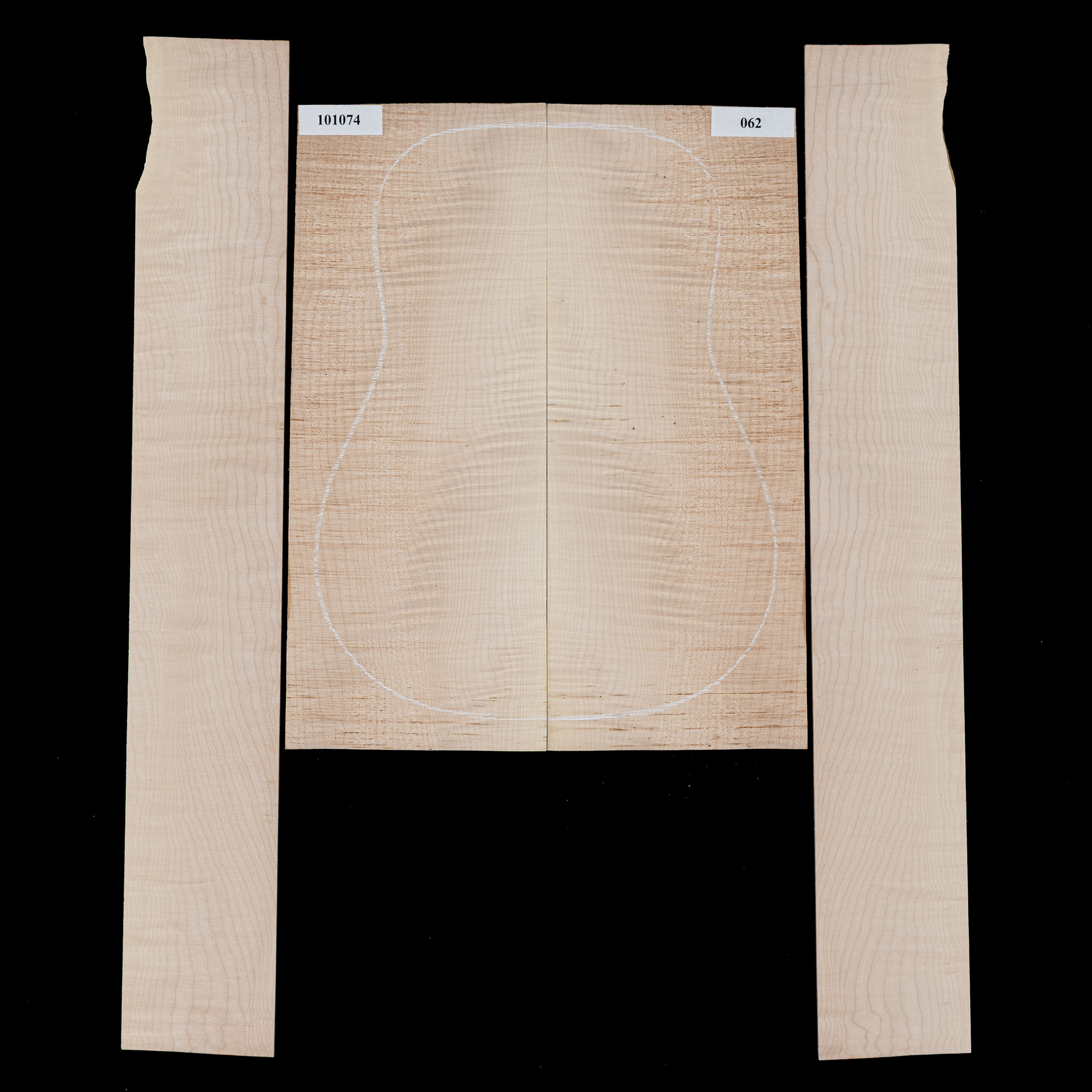 Each bookmatched back and side sets are ready for you to start your build. When joined, they are large enough for a dreadnought. Sides are unprofiled (rectangular) and unbent. Kiln-dried.
