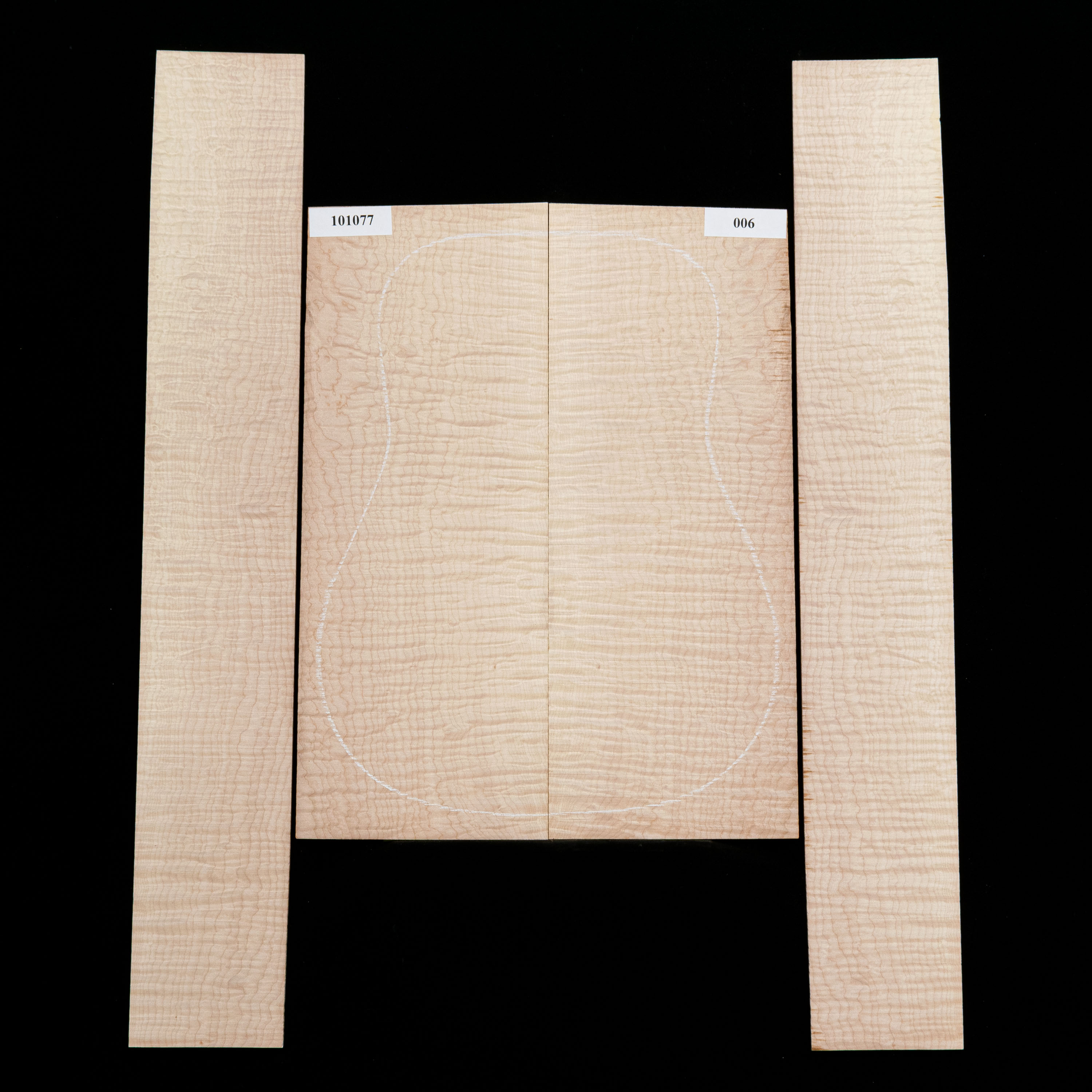 These are some of our most highly figured and prized sets, with extraordinary flame seen in every piece. If you're looking to craft a truly show-stopping heirloom instrument, look no further.