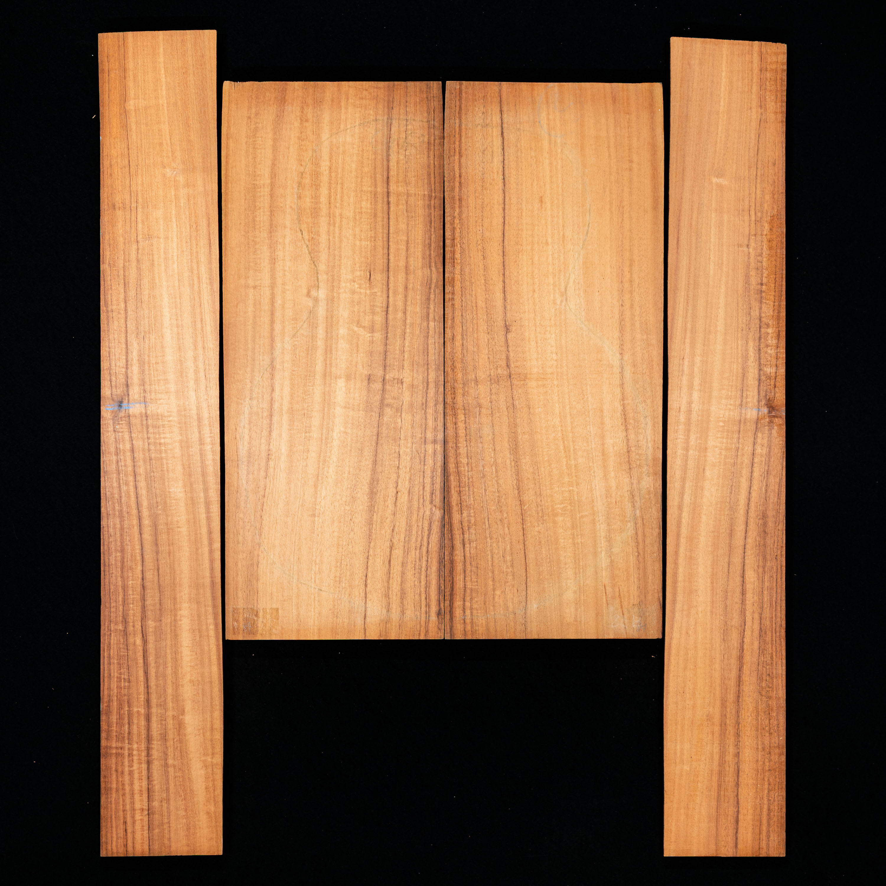 Originating in the Hawaiian Islands, Koa is a dense tropical hardwood that has been used for guitars and ukuleles since the 1920s. It is known for its rich visual character, with colors ranging from golden amber to deep browns, blacks, and occasional hints of purple. While highly figured Koa is especially prized, even more subtle sets like these offer a refined and timeless appearance.