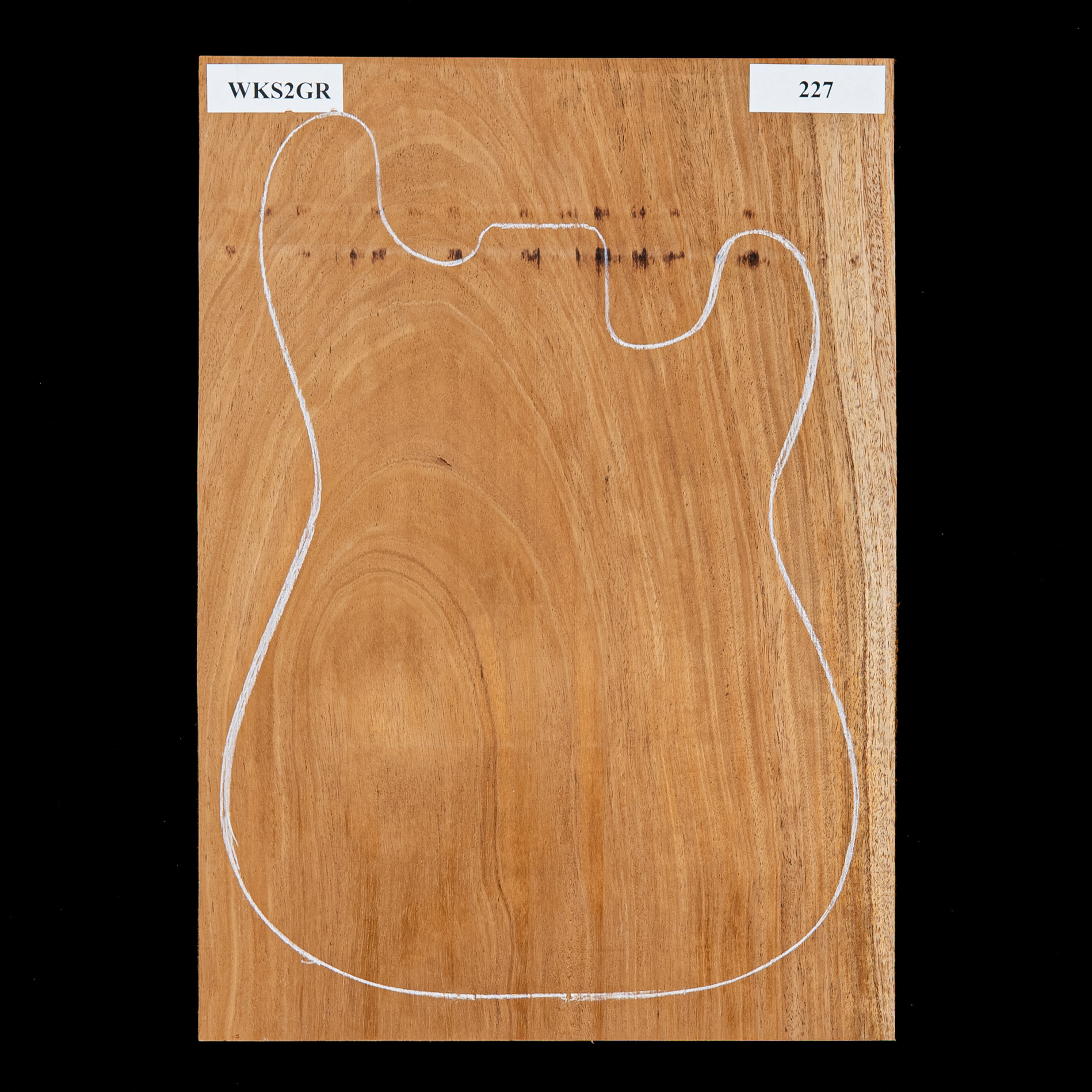 While it's denser and more fibrous than Honduran Mahogany, African Mahogany works and cuts well with both hand and power tools. The reddish-brown coloring will make a beautiful guitar with either a solid or translucent finish. It's an open pore wood, and requires filler to level the grain.