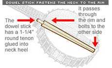 Installing a dowel stick in an old-time banjo